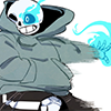 Sans has the ability to summon bones that do a very small amount of damage very quickly while not knocking the person they're being used on away. This means if someone doesn't step out of the way of the bones, they're going to die a rapid death of a thousand cuts. For in-game purposes, Sans can only summon twelve of these at a time. He has the ability to make light blue bones that do no damage as long as someone stands still while they travel through someone, but he can only summon two of them maximum, and these count toward his twelve-bone total. He cannot change any currently active bones into light blue bones or vice versa--he would have to dismiss and resummon new ones. Sans's bones ignore non-magical defense, but are still affected by magical defense. As is monster custom, Sans tends to organize these bones into patterns. Sans's patterns require precision and careful timing, but unless someone has completely let their guard down, it's always possible to dodge through these patterns without taking any damage.